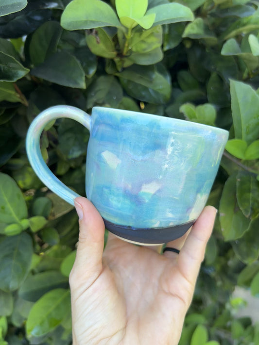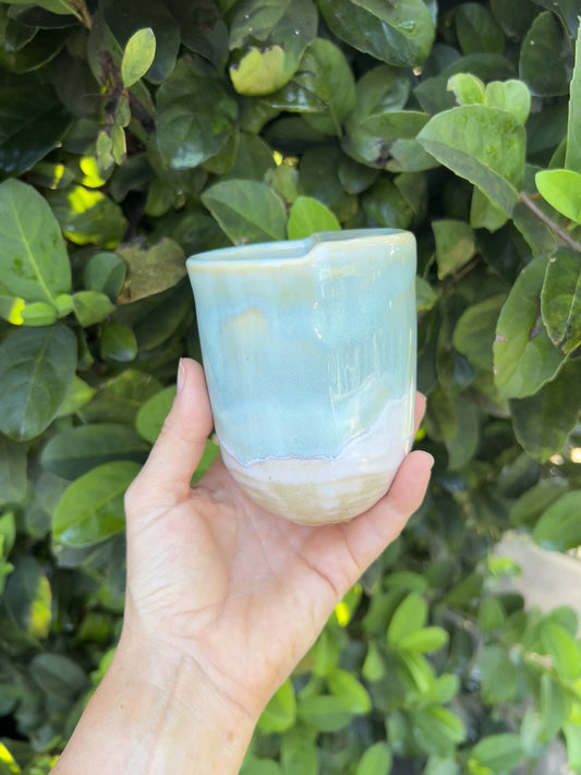Sold out10 oz Turquoise Speckle Thumb Cup