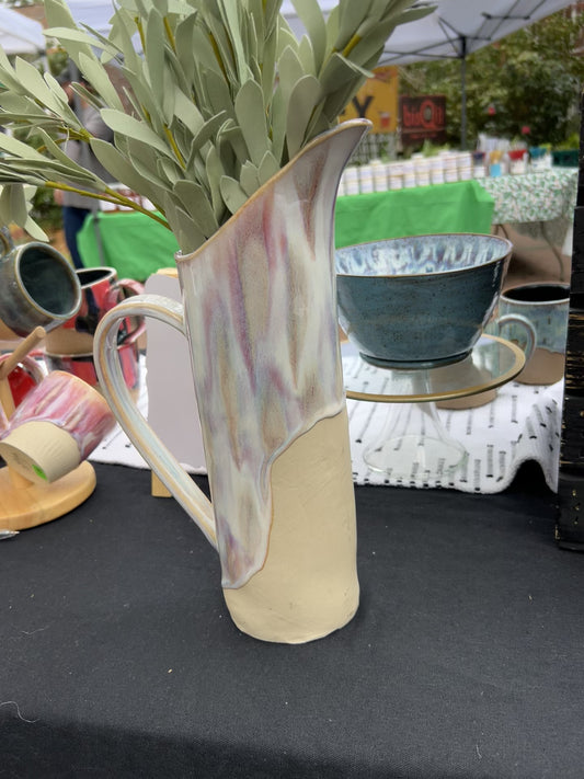 Sold outLarge Pink & White Pitcher Vase