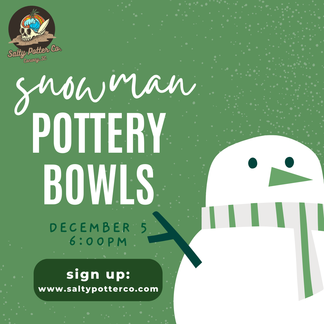 Join Salty Potter Co. for a fun filled hand building class as our instructor leads a step by step lesson to create and paint Christmas themed hand ornaments. All ages are welcome to join, under 6 requires parent participation.