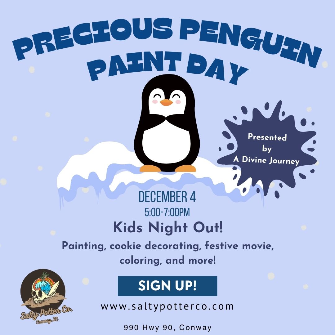 Join Salty Potter Co. as we welcome our guest artist A Divine Journey to the studio for this fun filled penguin painting class.